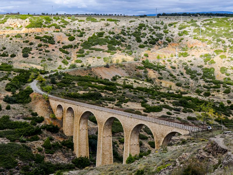 La vía verde de Ojos Negros es perfecta para todos los niveles de senderistas. Se trata de una antigua vía ferroviaria transformada en un camino peatonal y ciclista. Atraviesa preciosos paisajes rurales, viaductos y antiguos túneles, lo que la convierte en una opción ideal para disfrutar en familia o con amigos.