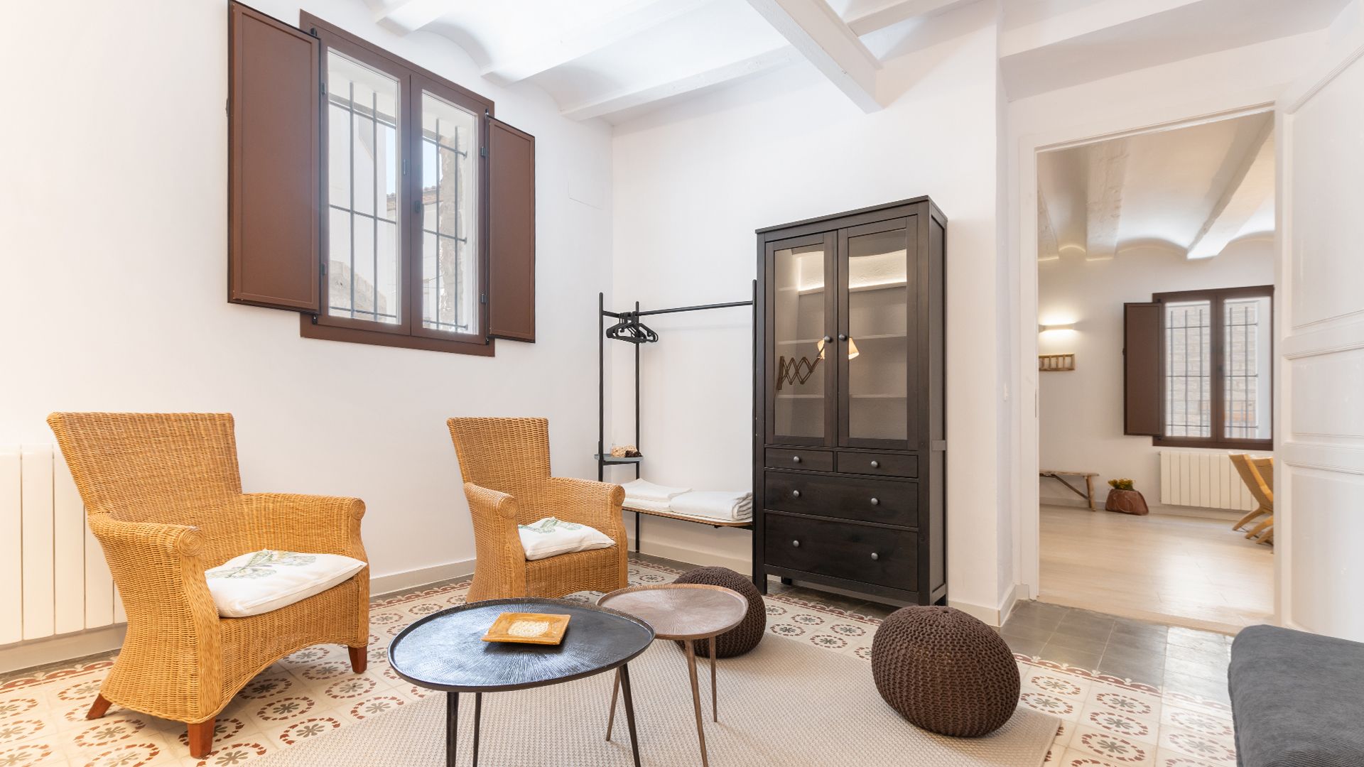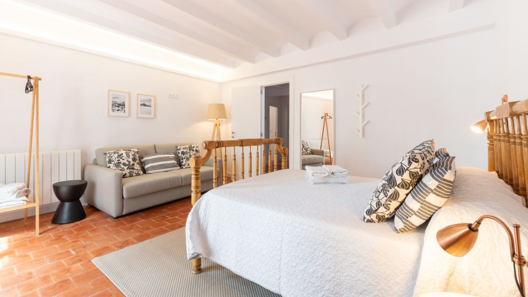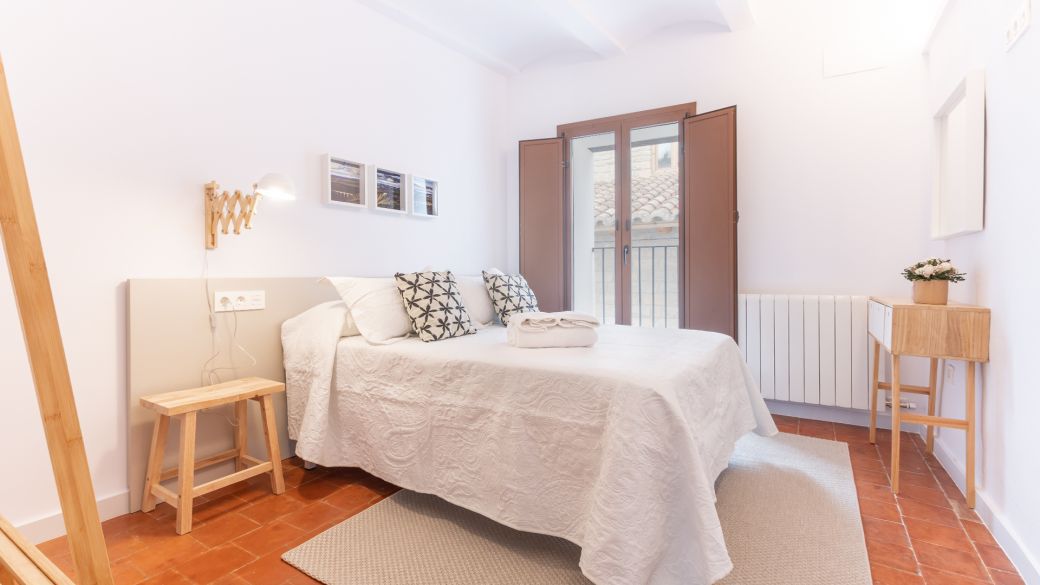 Y en la primera planta se localizan 4 habitaciones de matrimonio, decoradas con blancos y maderas naturales. Todas ellas cuentan con ventanales al exterior de las calles de Albentosa. En cualquiera de ellas se puede poner cama supletoria. Y, además, hay un baño completo, también totalmente equipado.