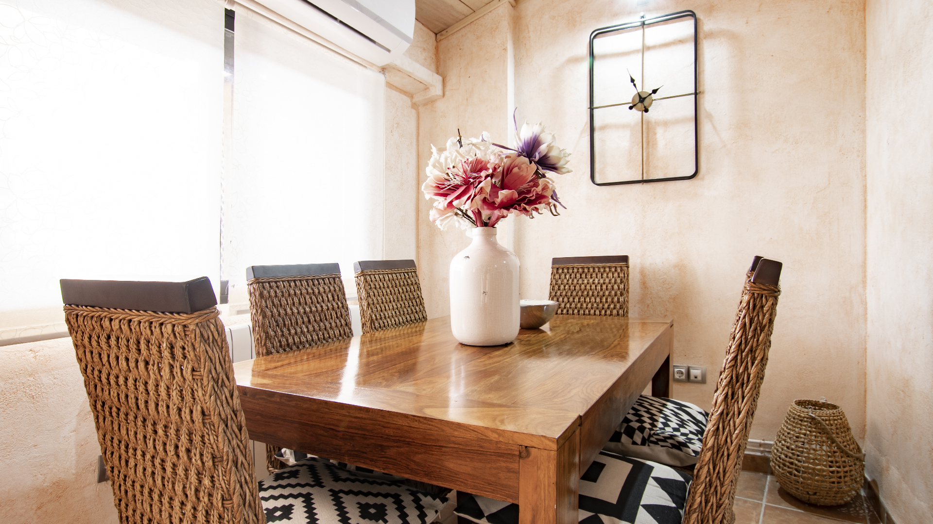 Nuestro ático de una única planta cuenta con 2 dormitorios, 1 salón con cocina integrada y 1 baño. Nuestro apartamento está totalmente equipado, no le faltan detalles ni complementos con mucho gusto, que hacen de esta casa tu casa.