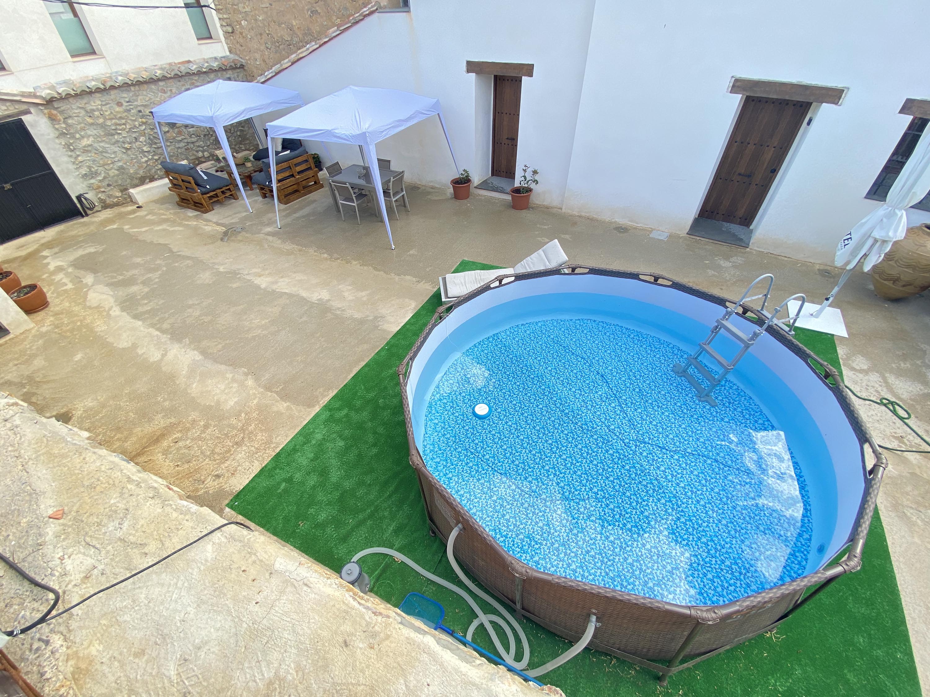 El caserón tiene una superficie de 500m² distribuidos en dos plantas habitables. Hemos optado por un sistema de calefacción totalmente ecológico de aerotermia para que la casa siempre se mantenga caliente. El agua caliente de la casa también va con este sistema de ahorro energético. El cerramiento de la casa es de doble acristalamiento aislante climalit en ventanales y contraventanas herméticas, para un total aislamiento. En esta última reforma hemos apostado por la sostenibilidad del edificio al igual que se han aprovechado todos los materiales nobles de la vivienda. No es necesario el aire acondicionado en verano porque la casa es muy fresca debido a sus paredes anchas, que protegen del calor y del frío.